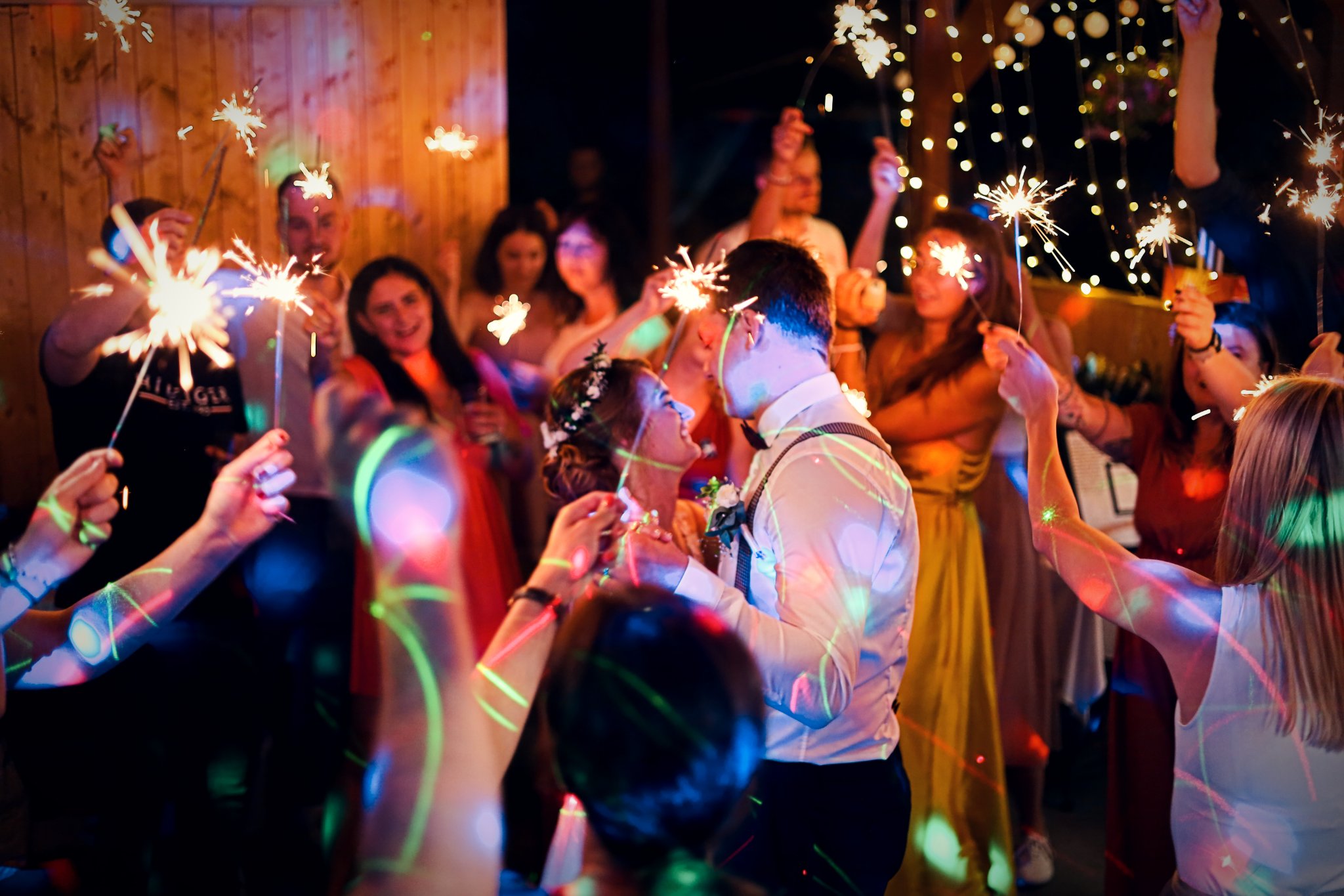 - Místo pro tanec (DJ obvykle používá kombinaci techniky, světel a efektů, které vytvářejí atmosféru a podporují energii na párty nebo svatbě)