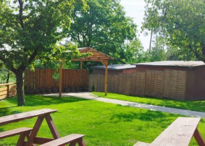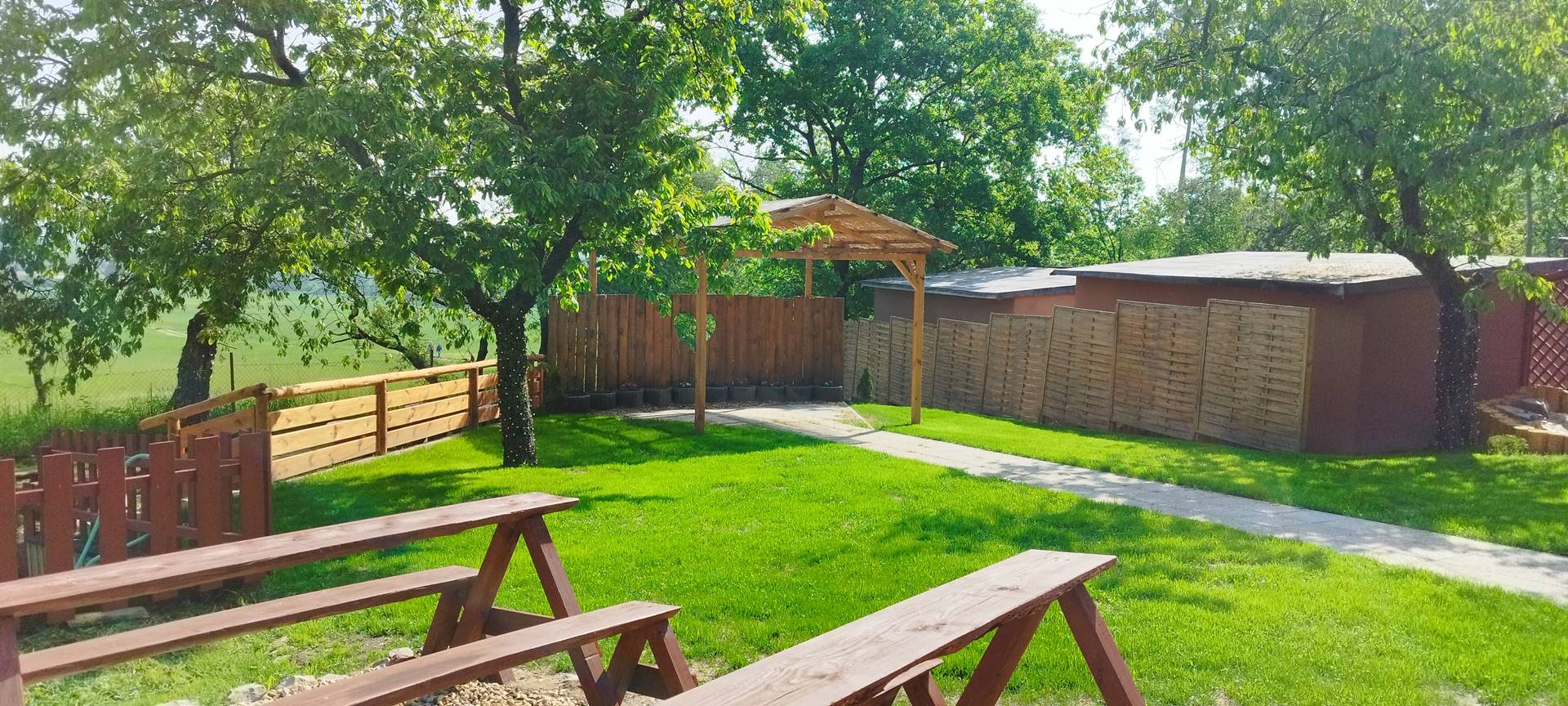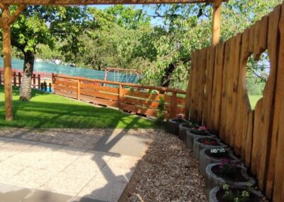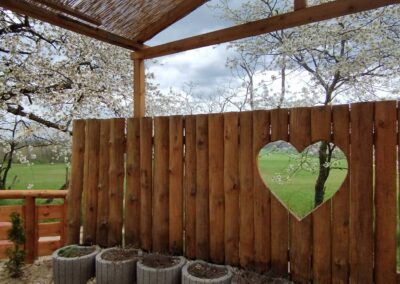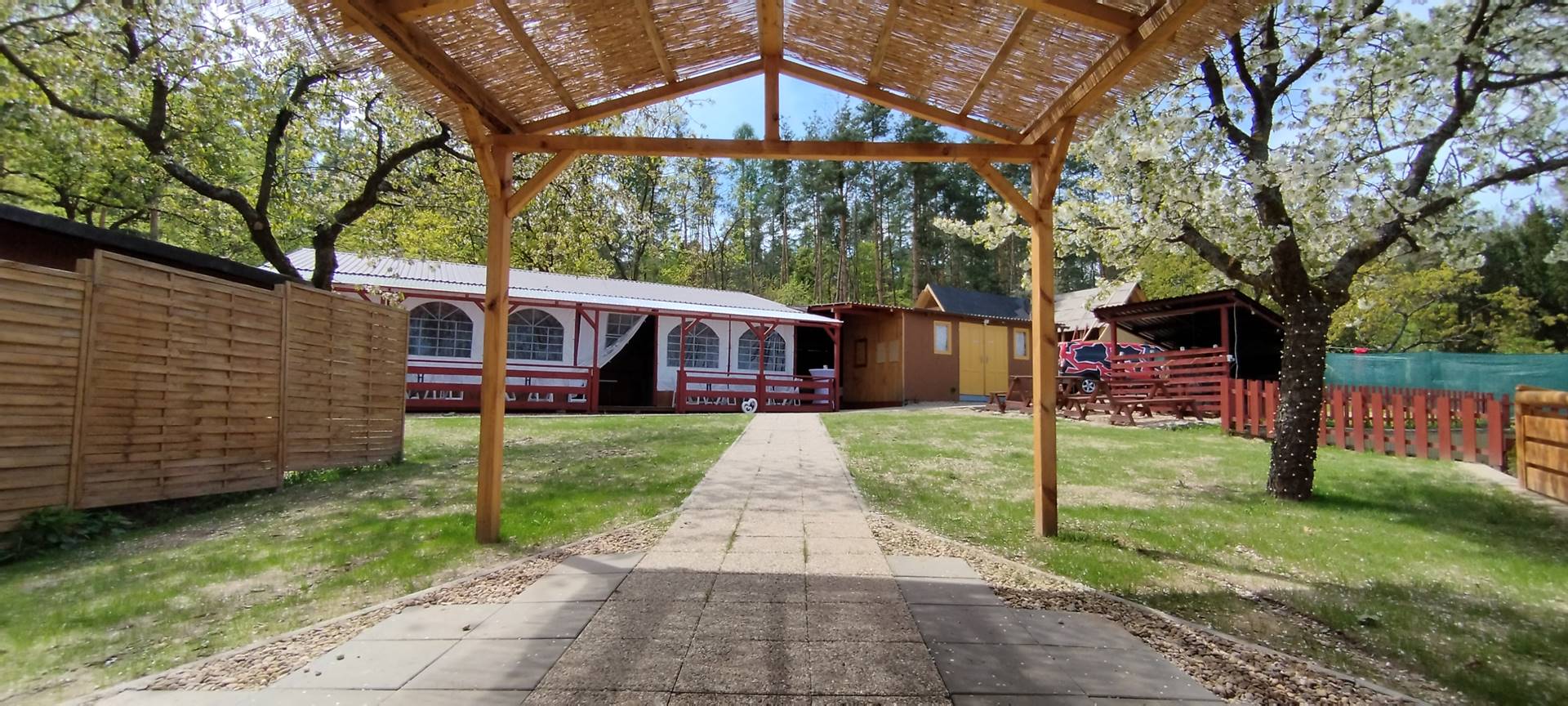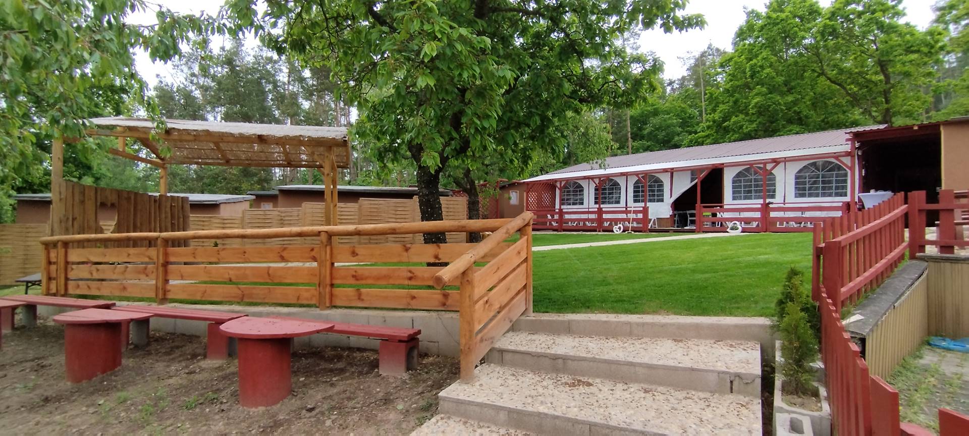 - Prostorná pergola – altán 8 m x12 m, bar, menší sklad, kuchyňka a místo pro tanec.