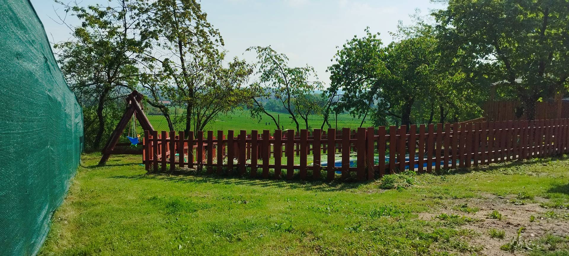 - Dětský koutek s hračkami, houpačky, pískoviště.