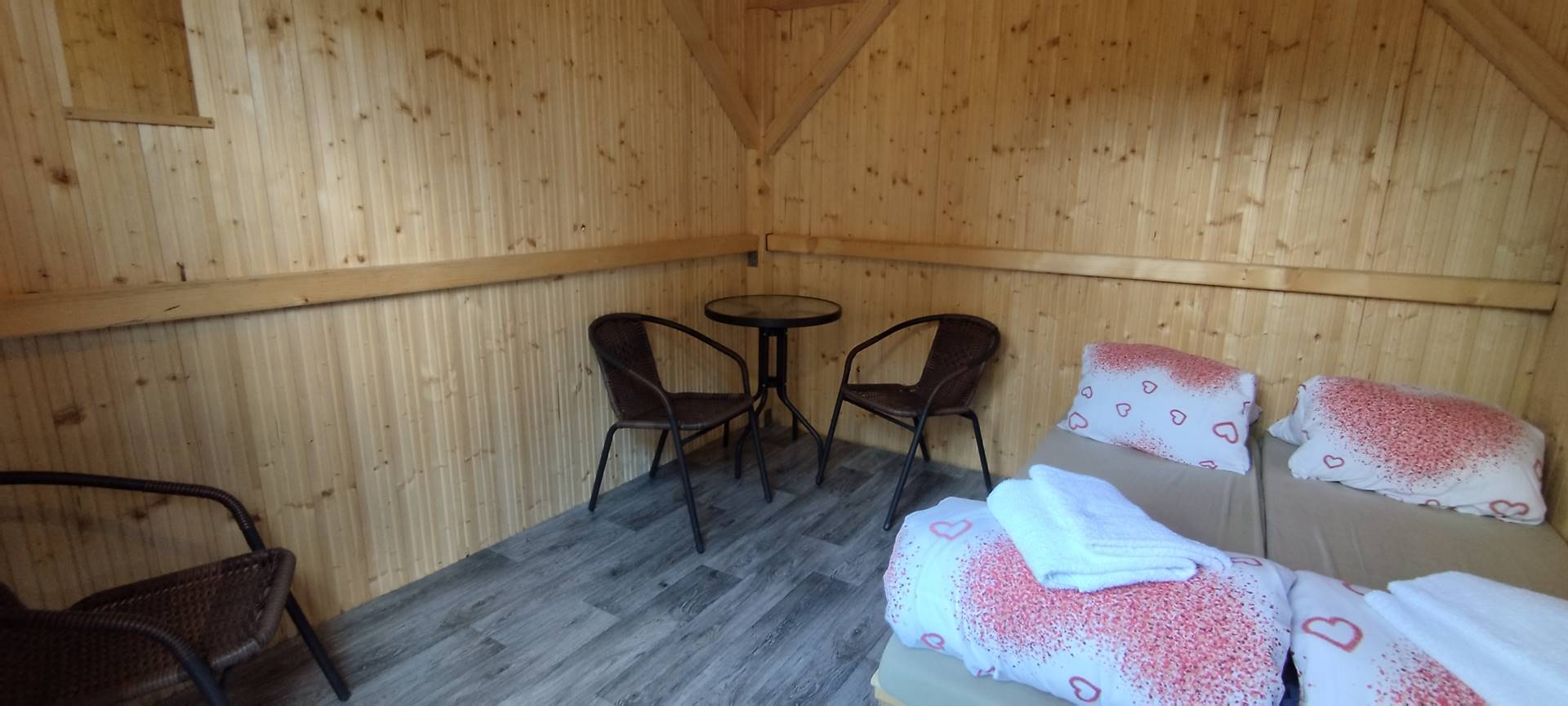 - Ubytování v 11 chatkách s elektřinou pro 15 až 40 osob včetně povlečení, ručníku a osušek