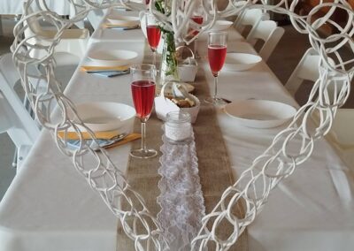 - Ubrusy, dekorace, světýlka, slavobrána, lucerny, běhouny v různých barvách, krabičky na prstýnky, etažéry na sladkosti, bedynky na svatební dary, světýlka na stoly, vázy, vázičky…..